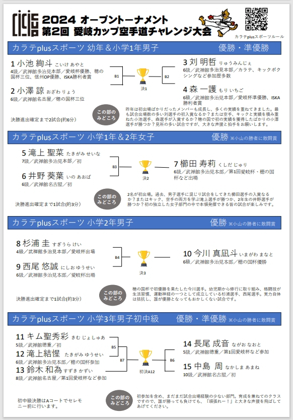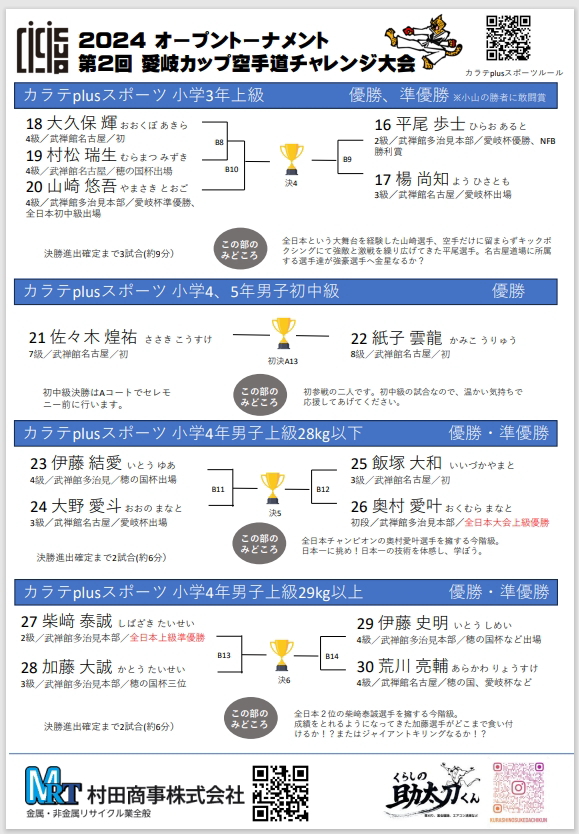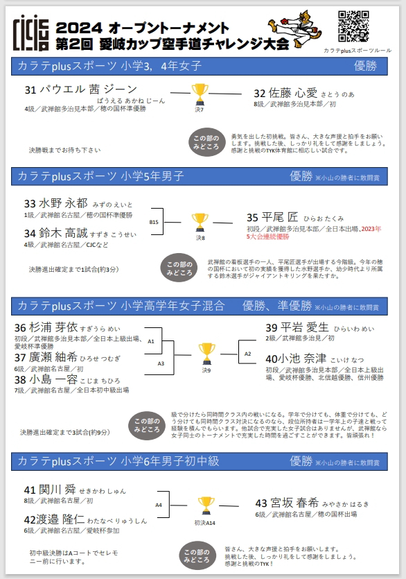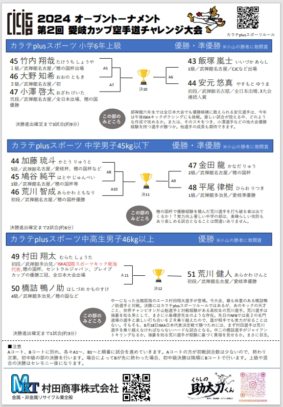 ・極力、決勝戦のみを避けるように実力、体格、実績を吟味し、上クラスへ統合をする場合があります。